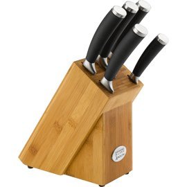 - 9cm Parer, 15cm Utility, 20cm Bread, 20cm Carver/Slicer, 20cm Chef's Knife, Bamboo/Wood knife block